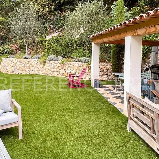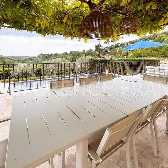 Votre référent immobilier local de MOUGINS (Sébastien MENAND) vous propose. Située à proximité des commerces et du vieux village de Mougins. Charmante villa provençale entièrement rénovée d'environ 200 m2, édifiée sur 1 200 m2 de terrain paysagé bénéficiant d'une jolie vue mer avec piscine chauffée, barbecue et nombreux espaces de réceptions. Entièrement climatisée, elle propose : EN REZ DE JARDIN : - Entrée - Toilette invité - Salon TV - Salle à manger - Cuisine ouverte entièrement équipée À L'ÉTAGE : - Buanderie avec lave-linge et sèche-li...