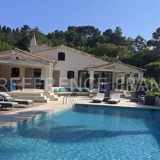 Votre référent immobilier local de MOUGINS (Sébastien MENAND) vous propose. Villa rénovée 4 chambres avec magnifique vue sur le village de Mougins. Grand terrain de 4122 m² avec piscine et court de tennis. Grande piscine et pool house. Location en bail civil (résidence secondaire ou logement de fonction). Possible 10 mois du 1er septembre 2025 au 30 juin 2026 au prix de 11000 € par mois. Ou 12 mois à compter du 1er septembre 2025 au prix de 15.000 € par mois. ......................................................................................