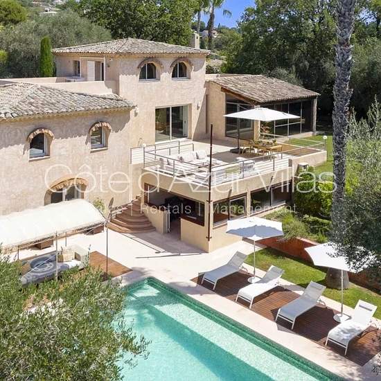 Agréable et spacieuse villa dans un quartier calme à flanc de colline, à 15 minutes à pied du cœur de la ville de Mougins, et à 15 minutes en voiture de Sophia-Antipolis et des écoles internationales. Propriété rénovée et isolée avec une grande piscine bénéficiant d'une exposition plein sud. Idéale pour les familles à la recherche d'un hébergement exclusif et tranquille entouré d'une nature luxuriante, à proximité de toutes commodités. À l'intérieur de la maison d'environ 200 m2, construite sur trois niveaux et décorée avec soin, on trouve t...