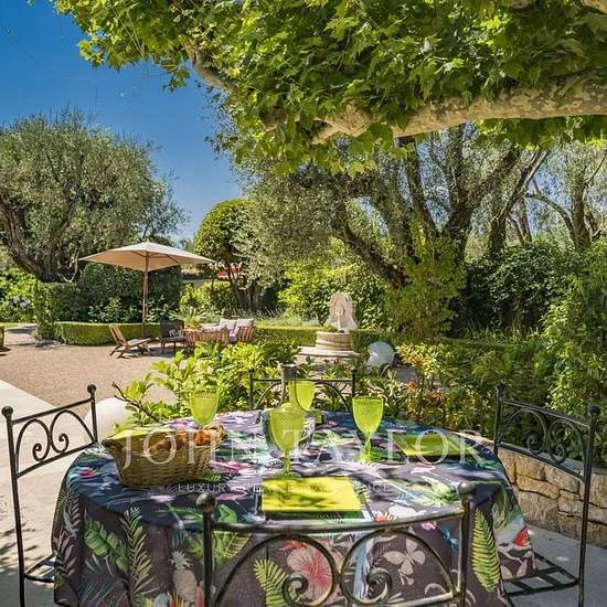 Disponibilité : pour 12 mois ***** Découvrez ce superbe mas provençal entièrement rénové, situé dans un quartier résidentiel à Mougins. La propriété offre un cadre de vie paisible et raffiné, de vastes espaces de réception et un magnifique jardin plat avec piscine chauffée. Rez-de-chaussée : Hall d’entrée avec toilettes invités Salon lumineux avec télévision et cheminée Bibliothèque Cuisine entièrement équipée Salle à manger pouvant accueillir jusqu’à 12 convives, ouvrant sur un patio grâce à une grande baie vitrée Salle de jeux avec bar et ...