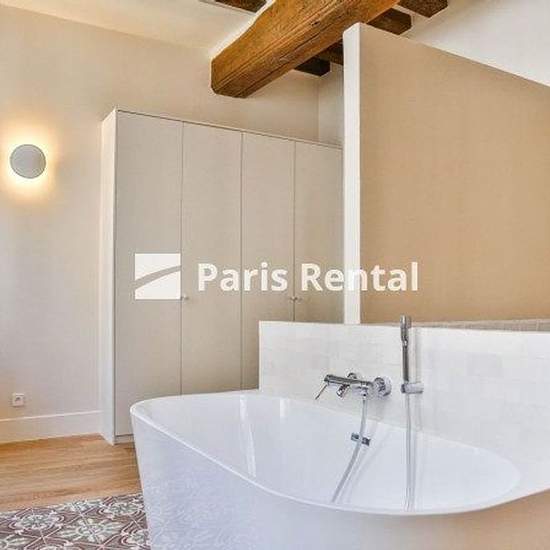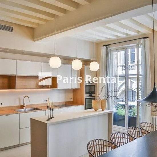 Apartment No. 59574. Civil code lease only. Luxurious town house in quadruplex located in the 6th arrondissement of Paris, in the Saint-Germain-des-Prés neighborhood. It is a late 17th-century building constructed by the city of Paris to house the artists who worked at the Odéon theatre, which at the time was called the "Comédie Française." The 1st floor features a large living room carefully decorated, an open kitchen fully equipped and very functional. The living room opens onto a quiet, tree-lined terrace, a true green jewel in the heart...