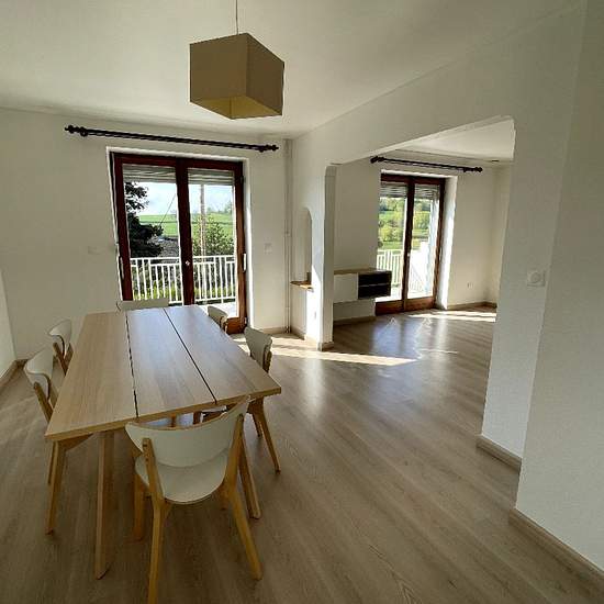 Maison coup de coeur à RAMMERSMATT (7mn de Thann) Vous rêvez de calme et d'une maison lumineuse dans un magnifique cadre de verdure ? N'hésitez plus, nous vous proposons de louer à RAMMERSMATT (68800) cette maison récemment rénovée de 125 m². Au rez-de-chaussée : vous trouverez un beau salon séjour ouvert sur une cuisine entièrement équipée, une chambre avec placards intégrés ainsi qu'une salle de bains avec douche et baignoire, un WC séparé. Accès terrasse. Le premier étage propose quant à lui, trois chambres (dont une enfilade), une salle ...