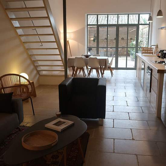 Prestations haut de gamme pour cette maison de village entièrement rénovée. Environs 126 m² avec au rez de chaussée un séjour / salon avec cuisine équipée US donnant sur une cour avec une partie couverte sans aucun vis à vis, un wc indépendant au 1er étage, 1 chambre avec salle d'eau et une chambre avec salle de bains, un wc indépendant, et un grand palier pouvant servir de bureau. Au 2ème étage, une chambre avec lavabo et un salon ou bureau. Les dépendances : une buanderie, un local vélo et un vaste garage. Libre en décembre Au calme ! Loué...