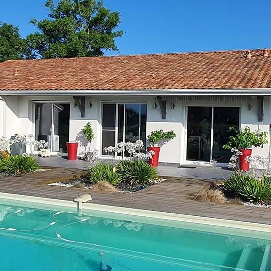 Iad France - Gaëlle Jamin vous propose : À louer – Belle maison contemporaine avec piscine à Sault-de-Navailles Vous allez aimer cette maison où l’on se projette immédiatement. Construite en 2015, cette maison contemporaine de plain-pied, située à Sault-de-Navailles, offre un équilibre parfait entre confort moderne, espace et sérénité. Un lieu pensé pour bien vivre, tout simplement. Développant environ 130 m² habitables, elle s’implante sur un superbe terrain de 1 820 m², idéal pour profiter pleinement des beaux jours, du calme environnant e...