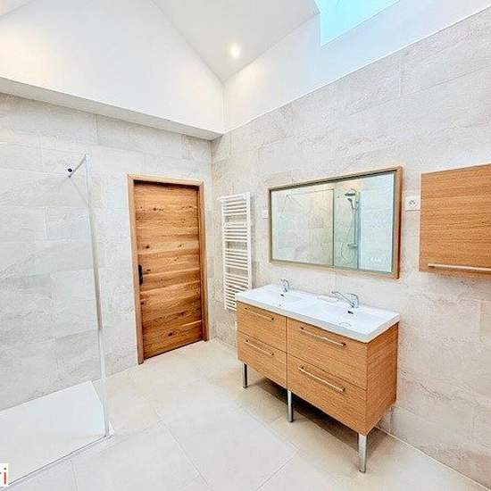 BIEN D'EXCEPTION MAISON INDIVIDUELLE DE PLAIN-PIED AU CUR D'UN PARC PAYSAGER Nichée au sein d'un parc paysager privé, aménagé et éclairé, cette maison individuelle entièrement rénovée offre un cadre de vie rare, alliant calme absolu, confort moderne et prestations de qualité. Dès l'entrée, vous découvrirez une atmosphère élégante et lumineuse. Le salon séjour avec cuisine ouverte d'environ 38 m² séduit par ses volumes et sa clarté, s'ouvrant sur une superbe terrasse exposée plein sud de 25 m², avec une vue dégagée. La maison, de plain-pie...