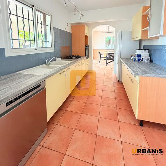 Urbanis, votre agence immobilière de Saint Paul à la Réunion, vous propose : Désignation : Urbanis votre agence immobilière de la Plaine Saint Paul, vous invite à découvrir cette charmante maison F5 d'une surface de 150m2 permettant l'épanouissement d'une famille, disponible dans le cadre d'une location meublée. Située dans un des quartiers les plus prisée de la plaine Saint Paul, la villa est en R+1 et se compose au rez-de-chaussée d'une cuisine entièrement aménagée et équipée ouverte sur une varangue spacieuse. Séjour/salle à manger, une s...