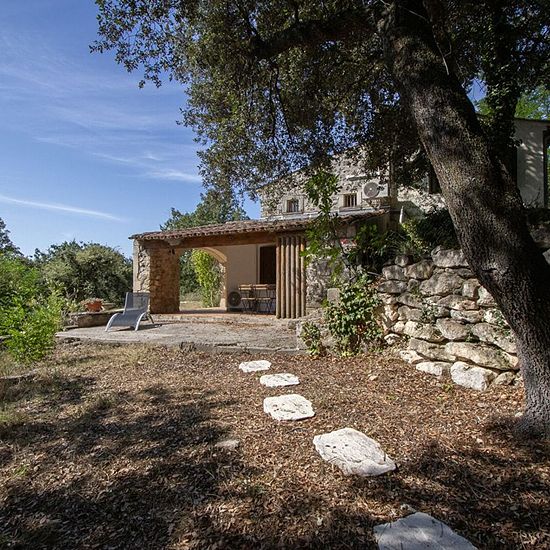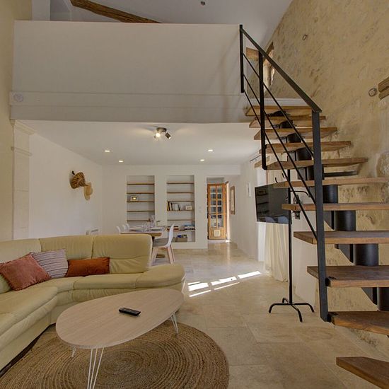 À louer, sur les hauteurs de St Restitut, maison meublée de 83.45 m² mitoyenne sur un étage entièrement meublée. En rez-de-jardin, une cuisine avec climatisation. Une pièce de séjour salon / salle à manger avec TV. À l'étage, une mezzanine / coin bureau climatisé. 2 Chambres, une salle d'eau et un toilette. Couloir à l'étage climatisé. Une terrasse et un jardin privatif.