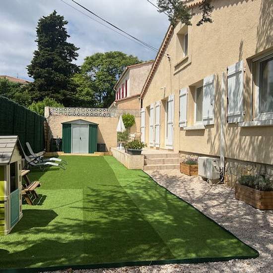 Toulon Ouest quartier Valbertrand, dans un secteur résidentiel maison individuelle T5 avec séjour double et 3 chambres. De plain pieds, au calme absolu. Garage, buanderie. Disponible début Mars 2026.