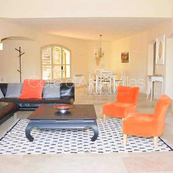 DISPONIBLE A PARTIR DE SEPTEMBRE 2025 La villa de style Couelle est située dans le domaine le plus privilégié de la région. Le domaine fermé et sécurisé avec agent 24/7 est construit autour d'un château médiéval. Localisation parfaite pour les écoles internationales. Charmante villa d'environ 125 m², composée de 4 chambres, dont une avec un accès indépendant. Le séjour ouvre sur une belle terrasse ensoleillée. Rez-de-chaussée : Salon / salle à manger ouvrant sur une belle terrasse ensoleillée, cuisine équipée, suite parentale avec rangements...