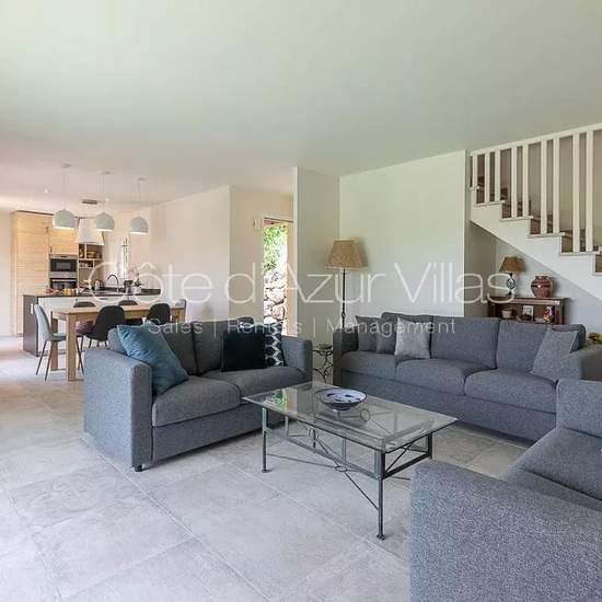 DISPONIBLE D'OCTOBRE 2026 À MAI 2027 Villa d'environ 126m² de 4 chambres entièrement rénovée en 2019, située dans un petit domaine fermé et calme à quelques pas du village de Valbonne. Internet avec fibre optique. Rez-de-chaussée : Salon / salle à manger ouvrant sur une belle terrasse ensoleillée côté piscine, cuisine entièrement équipée, suite parentale avec rangements ensuite avec baignoire & WC, une seconde chambre en suite avec salle de douche & WC ouvrant sur la terrasse, buanderie et WC invités. Premier étage : Deux chambres partageant...