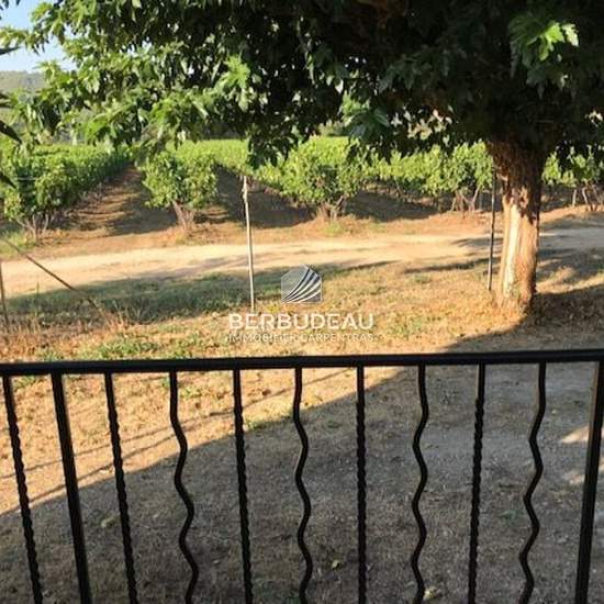 Part of a mas (traditional farmhouse), type 5, comprising a courtyard, an entrance opening into the living room, a separate fitted kitchen, a laundry room and a garage, 4 bedrooms and an office, and a shower room with a separate toilet. The whole is in excellent condition and air-conditioned. Views of the vineyards from every room!