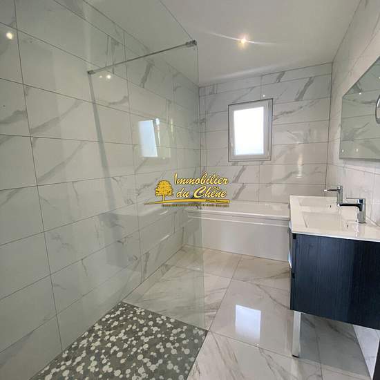 Découvrez ce magnifique pavillon de 105 m², construit en 2023, niché dans un cadre idyllique offrant une vue imprenable sur la campagne environnante. Ce havre de paix allie modernité et confort, avec une surface habitable généreuse et des finitions de qualité. Imaginez-vous dans le vaste séjour de 49 m², baigné de lumière grâce à une exposition sud-est, parfait pour des moments conviviaux en famille ou entre amis. La cuisine équipée, spacieuse et fonctionnelle, ravira les amateurs de gastronomie. Les trois chambres, dont une suite parentale,...