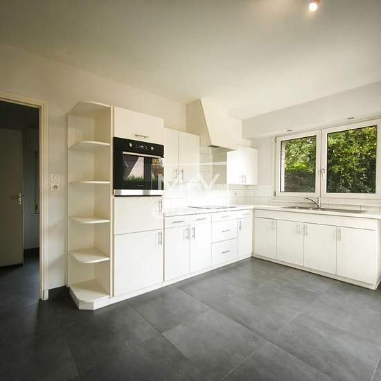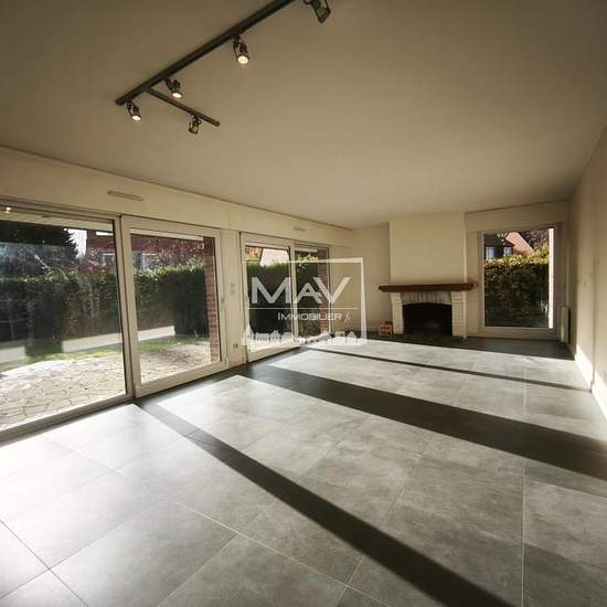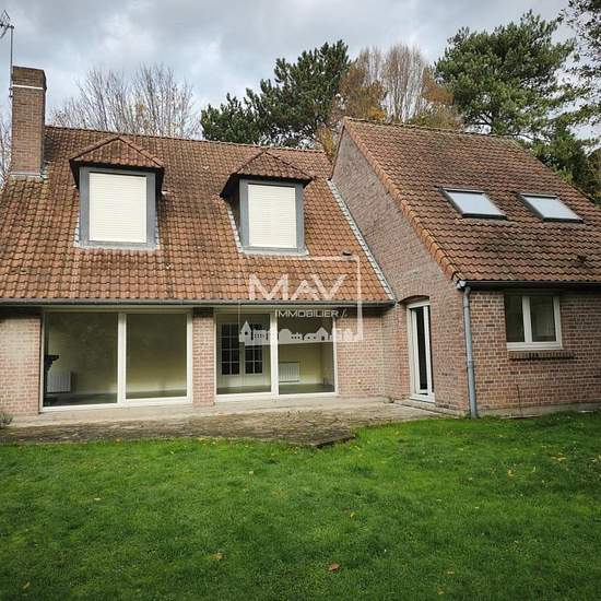 À louer - wasquehal - située avenue de la marne, à quelques mètres de la station de tramway cartelot et du centre commercial carrefour, maison individuelle au calme de 158 m² habitable, composée d'une entrée avec wc indépendants, un séjour 35,75 m², cuisine aménagée et équipée (four, plaques, hotte), un cellier attenant, une suite parentale avec dressing et salle de bains. À l'étage, trois chambres dont une avec de grands placards, une salle de douche et un wc séparé. Jardin de 993 m², une cave et un garage double complète cette maison. Chau...