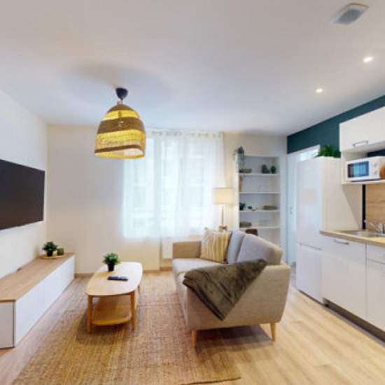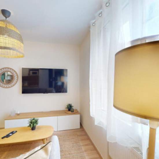 With IMMOJEUNE, find the best student and young professional housing in a few clicks and with complete confidence. // SHARED APARTMENT SHARED APARTMENT Rue de Stalingrad. Apartment fully renovated and decorated in early 2024 on the 1st floor of a family condominium. Shops at the foot of the building: Auchan, pharmacy, etc. This shared apartment consists of 2 bedrooms with private shower rooms, each equipped with a 140x190 bed, TV, desk and storage. You will also have a living area fully furnished and equipped (sofa, large-screen TV, armchair...