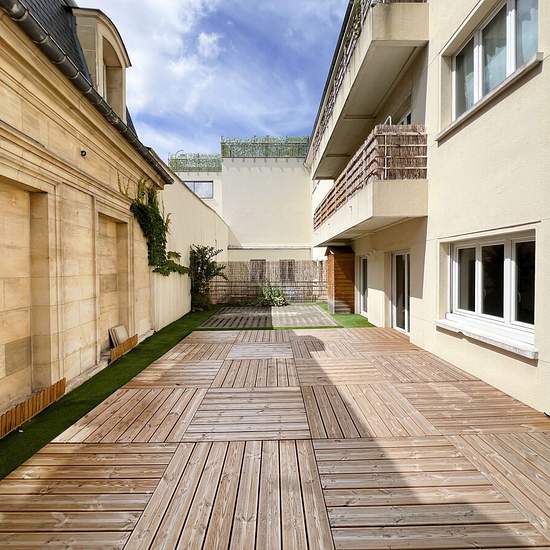 CAEN - Rue du Pont Saint Jacques Appartement unique en plein coeur du centre ville de Caen (Place de la République / Théâtre) avec de grands volumes, proche de tous les commerces et services. Au premier étage d'une petite copropriété celui-ci comprend, sur 113 m², une entrée, un vaste séjour/salon ouvert sur l'extérieur, une cuisine ouverte également, une salle de bain avec douche, baignoire et double vasque, ainsi que 3 voir 4 chambres selon le besoin ( chambre double ou chambre + bureau). Une grande terrasse de 80 m² entièrement privative ...