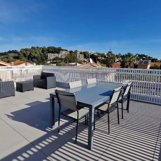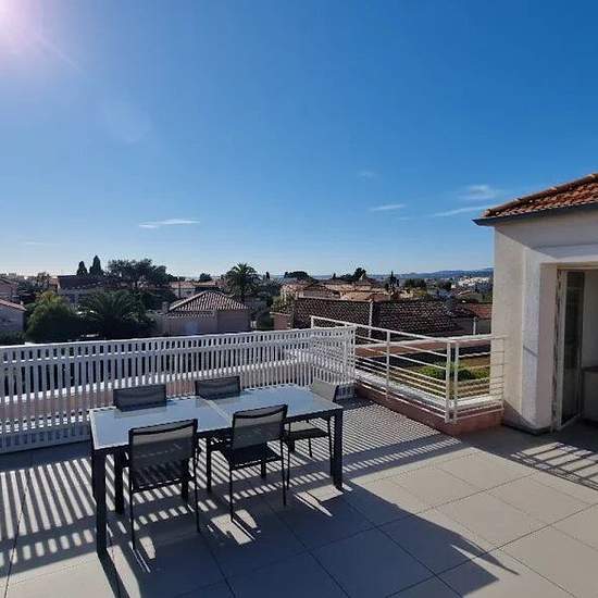 On the Plateau des Bréguières, a superb 6-room duplex of 178 m² with a 38 m² open-air terrace. Very beautiful family apartment: a peaceful haven with a large double living room and a lovely separate kitchen opening onto a balcony; 4 bedrooms including a master with bathroom, shower and dressing room; 2 shower rooms; laundry room; double-height living room opening onto the terrace with panoramic views; study/bedroom. A true delight to live in, set in a private villa with 3 parking spaces. Rare — a must-see, don't delay.