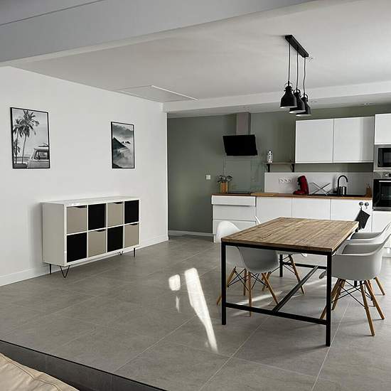 A LOUER - CENTRE VILLE CHOLET Un appartement tout rénové comprenant: Un vaste salon-séjour lumineux avec cuisine aménagée et équipée (hotte, plaque de cuisson, four, micro-ondes, réfrigérateur). 4 chambres indépendantes, parfaites pour préserver l'intimité de chacun. 2 salles d'eau modernes et 2 WC séparés. Buanderie fonctionnelle, pour simplifier l'entretien. Terrasse ensoleillée, idéale pour partager des repas, se détendre ou profiter des beaux jours ainsi qu'un local vélo. DISPONIBLE RAPIDEMENT DPE : C Ne manquez pas cette opportunité ! C...
