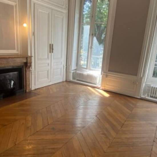 Place Puvis de Chavannes, Lyon 6th arrondissement — Very beautiful six-room apartment with five bedrooms, a living room with an alcove, a bathroom and a shower room, and a separate kitchen. Ideal location between Foch and the Parc de la Tête d'Or; attractive period building with decorative fireplaces and parquet floors. Housing subject to rent control: Reference rent: €1,825.81; Increased reference rent: €2,196.42. Contact: Emmanuella. Information on the risks to which this property is exposed is available on the Géorisques website: