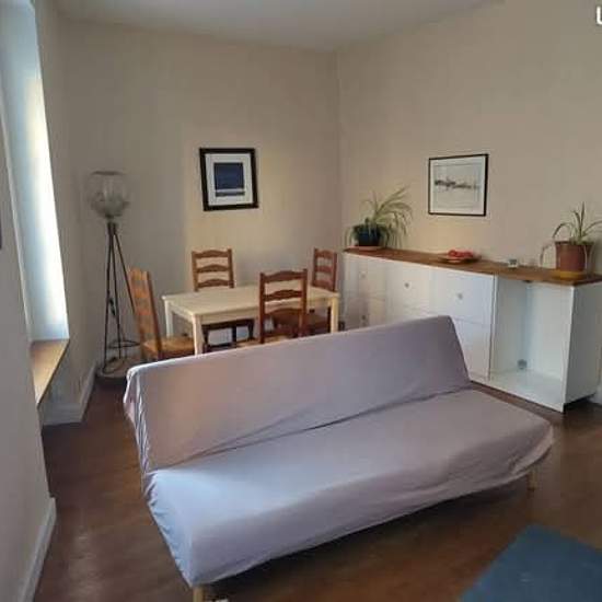 Location d'une maison de ville située rue David à Lyon 3. La maison se compose de 2 appartements, l'un en RdC (non concerné par la location), et un second, objet de cette location. L'appartement à l'étage se compose de 2 chambres meublées (lit double et dressing), un séjour/salle à manger aménagé, une cuisine totalement aménagée (Four, Plaque Induction, Frigo, Micro-onde), une salle de bain avec baignoire, un WC indépendant et de 2 pièces en combles avec une hauteur restreinte de 1,70m au plus haut (utilisé en coin TV par le propriétaire jus...