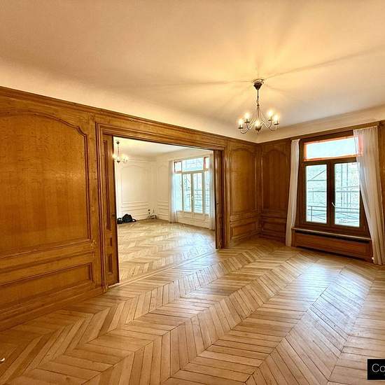 Dans un immeuble bourgeois avec ascenseur, au troisième étage, cet appartement de 6 pièces entièrement rénové. Il se compose d'une élégante entrée ouvrant sur un vaste séjour, prolongé par un balcon. 4 chambres calmes, donnant sur cour, assurent confort et tranquillité. La cuisine indépendante et aménagée. L'appartement dispose de trois salles de bains, trois WC ainsi que de très nombreux rangements intégrés. Le parquet en bois massif, le chauffage et l'eau chaude collectifs, ainsi que la présence d'un gardien participent à l'agrément de ce ...
