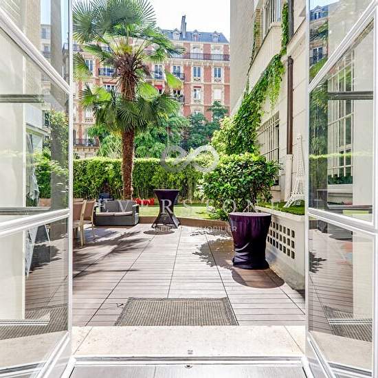 A propos de ce bien Exclusivité - Paris - La Muette - Rue du Conseiller Collignon En rez-de-jardin d'un bel immeuble en pierre de taille, un exceptionnel appartement de réception entièrement meublé et équipé de plus de 300m2. Il se compose d'une belle entrée desservant une grande réception donnant sur une terrasse et un beau jardin privatif, d'une très grande cuisine dînatoire, d'une suite parentale comprenant une chambre de 40m2 donnant sur le jardin avec « dressing Madame », d'un « dressing Monsieur », d'un salon télé, d'une vaste salle d...