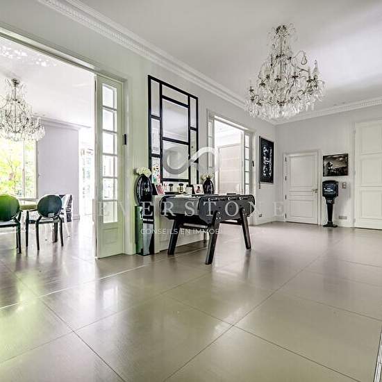 A propos de ce bien Exclusivité - Paris - La Muette - Rue du Conseiller Collignon En rez-de-jardin d'un bel immeuble en pierre de taille, un exceptionnel appartement de réception entièrement meublé et équipé de plus de 300m2. Il se compose d'une belle entrée desservant une grande réception donnant sur une terrasse et un beau jardin privatif, d'une très grande cuisine dînatoire, d'une suite parentale comprenant une chambre de 40m2 donnant sur le jardin avec « dressing Madame », d'un « dressing Monsieur », d'un salon télé, d'une vaste salle d...