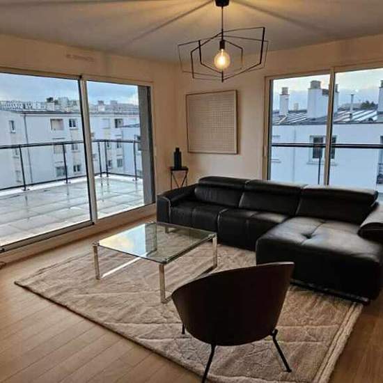 RENNES - boulevard de Verdun - BIEN RARE A LA LOCATION Venez découvrir ce magnifique appartement de type 6 MEUBLÉ avec goût sur rooftop, dans une résidence récente et de standing. Il se compose d'une belle pièce de vie ouverte sur une cuisine totalement aménagée et équipée, d'une arrière-cuisine, de 4 chambres avec placards dont une suite parentale avec un dressing et une salle d'eau privative, d'une salle de bains et deux W.C. Une terrasse de 85 m² sans vis-à-vis faisant le tour de l'appartement. Deux garages fermés en sous-sol. Libre de su...
