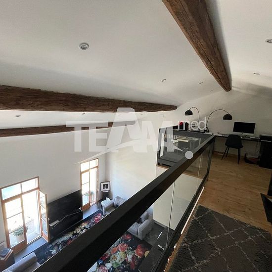 Idéalement situé en c?ur de ville, sur quai, ce magnifique appartement de type loft d'environ 164 m² au 2ème et dernier étage d'un petit immeuble offre des volumes rares et une vue dégagée sur quai et Mont Saint-Clair. Il est composé d'une pièce de vie d'environ 70 m², séjour et cuisine ouverte, 4 chambres avec placards dont une chambre parentale, deux salles de bains, deux wc et espace mezzanine pouvant servir de bureau, coin lecture... LIBRE Loyer: 1 860.00 €* Dont provision sur charges : 40 € par mois (régularisation annuelle) Honoraires ...
