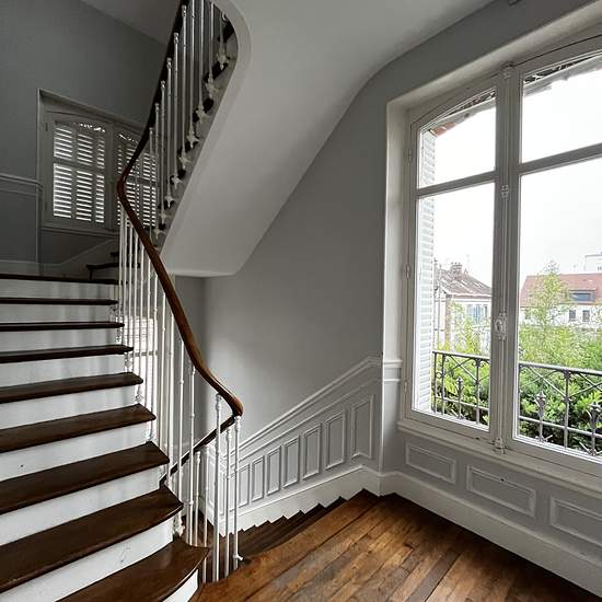 PROCHE CENTRE VILLE Un appartement en triplex de type VI d'une surface habitable de 108,21m2 comprenant au rdc entrée privative, au 1er étage palier, cuisine meublée équipée, séjour/salon, un bureau, wc, au 2ème étage palier avec placard, trois chambres, salle de bains + douche. Chauffage individuel électrique (PAC). CE : C. Loyer : 900 EUR/mois HC + 30 EUR de provisions de charges mensuelles avec régularisation annuelle. Dépôt de garantie : 900EUR. Honoraires d'agence à la charge du locataire : 930EUR TTC dont 327.88EUR TTC d'état des lieux...