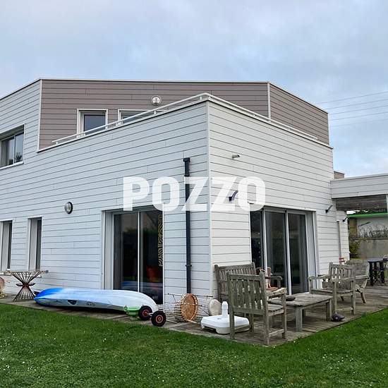 Pozzo Immobilier vous propose une maison contemporaine comprenant au rez-de-chaussée : entrée avec placard, séjour-salon, cuisine aménagée, chambre avec salle d'eau, wc, buanderie. A l'étage: palier, trois chambres avec placard, salle de bains (baignoire et douche) avec wc. Garage et jardin.
