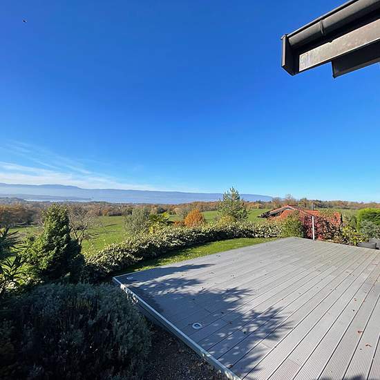 Maison d'architecte d'exception avec vue panoramique sur le lac Léman. Nichée au calme, dans un environnement privilégié, cette somptueuse maison d'architecte vous séduira par ses prestations haut de gamme et sa vue imprenable sur le lac Léman depuis le salon et ses terrasses. Offrant 202 m² habitables (pour 327 m² utiles), cette propriété baignée de lumière propose de vastes volumes et une circulation fluide, idéale pour une vie de famille confortable et agréable. Vous bénéficierez également d'un système de chauffage performant, avec l'inst...