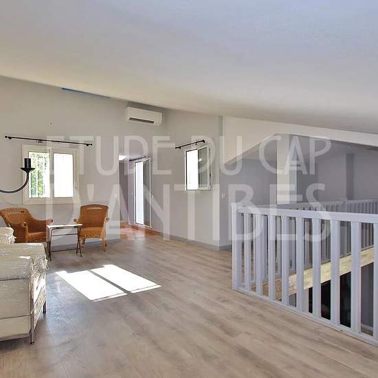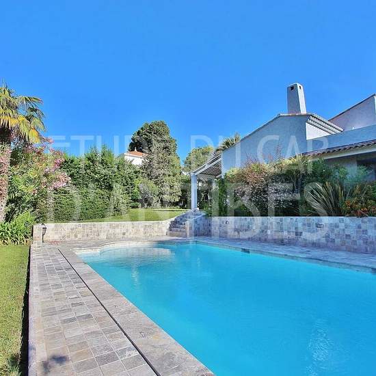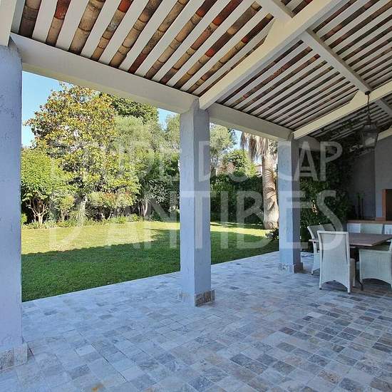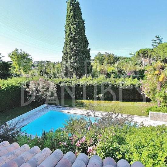 Location vide Au cœur du Cap d'Antibes au calme et proche des plages, splendide villa de 250 m² habitable composée d'un séjour/salle à manger avec cheminée, 4 belles chambres, 4 salles de bains, le tout sur un beau terrain arboré de 1600m² avec piscine. Garage double et cave