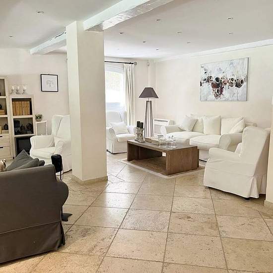 LOCATION A L’ANNEE - Villa Provençale, de 400 m2 sur un terrain paysagé de 2000 m2 avec piscine. La villa comprend un beau séjour, deux cuisines, 5 chambres, 5 salles de bains, 2 salles d’eau. Un appartement de gardien avec 2 salles de bain, une petite cuisine, 2 chambres (4 couchages). Chaudière au fuel, pompe à chaleur, salle de bain avec douche et WC à la piscine. Climatisation dans toute la villa, salle de sport indépendante. Garage couvert pour 2/3 voitures, plus deux parkings. Système d’alarme. 2 box SFR et Orange.