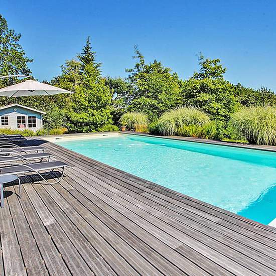 LOCATION SAISONNIERE :Au cœur d'un parc paysagé (table de ping-pong, trampoline) au calme et sans vis-à-vis, cette magnifique maison néo-basque de 300m² aux magnifiques volumes, à la belle luminosité et aux prestations haut de gamme. Rez-de-chaussée : grand salon ouvert sur le jardin et la piscine (11 x 5 m) par de grandes baies vitrées, cuisine équipée donnant sur une grande terrasse, chambre de plain-pied avec sa salle de bains et son accès direct à la terrasse et au jardin. A l'étage : 4 grandes chambres avec leurs salles de bain ou d'eau...