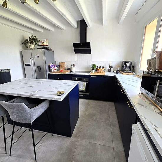 Située au coeur de la campagne de Bourdalat, à seulement 10 minutes de Villeneuve-de-Marsan, cette maison de 114 m² habitables sur un terrain arboré de 2 150 m² partiellement clôturé offre un cadre de vie privilégié, sans voisin proche, pour profiter pleinement de la nature et du silence. Le rez-de-chaussée accueille un salon séjour d'environ 33 m², lumineux et chaleureux, doté d'un insert à bois avec diffusion de chaleur à l'étage. La cuisine moderne et équipée, d'environ 15,6 m², avec îlot central, allie fonctionnalité et design, idéale po...