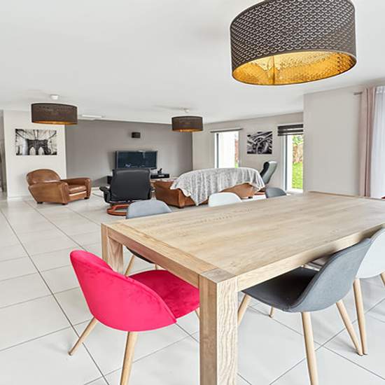 GUENNO IMMOBILIER MET A VOTRE DISPOSITION, au coeur du centre-ville de Bréal-sous-Montfort, à seulement 8 minutes à pied des commerces et des écoles, dans un secteur prisé, une magnifique maison familiale offrant un double garage et un grand jardin facile d'entretien, agrémenté d'une belle terrasse exposée SUD-OUEST. Dès l'entrée, vous profiterez d'un grand placard de rangement. La cuisine dinatoire, entièrement aménagée et équipée, s'ouvre sur une spacieuse pièce de vie baignée de lumière, donnant directement sur le jardin sans vis-à-vis. L...