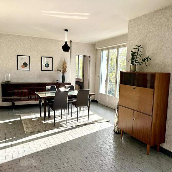 Idéalement située à proximité immédiate du tram C et du Parc Ausone, maison meublée de 150m2 baignée de lumière avec un grand garage de 37m2 et un terrain arboré de 1068m2 exposée Sud. Au rez de chaussée, une belle entrée avec escalier en marbre dessert un salon donnant directement sur le jardin, une chambre, une salle d'eau et une buanderie. A l'étage un séjour avec accès à la terrasse et au jardin par un escalier extérieur, une vaste cuisine aménagée et équipée, 3 chambres, une salle de bain et wc séparé. La maison dispose d'un grand garag...
