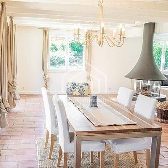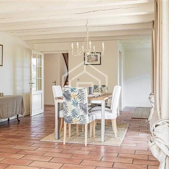 About this property If you are looking for a furnished family home with generous space, this one is for you! Located in a quiet residential neighborhood in a rural setting but five minutes by car from the town center, the house is spread over two levels as follows: On the ground floor: A double-height entrance, a hallway, a fitted kitchen with access to a terrace at the rear of the house, a wine cellar in the basement accessible from the kitchen, a large bright living room (with exposed beams) and a central fireplace, access to the terrace ...