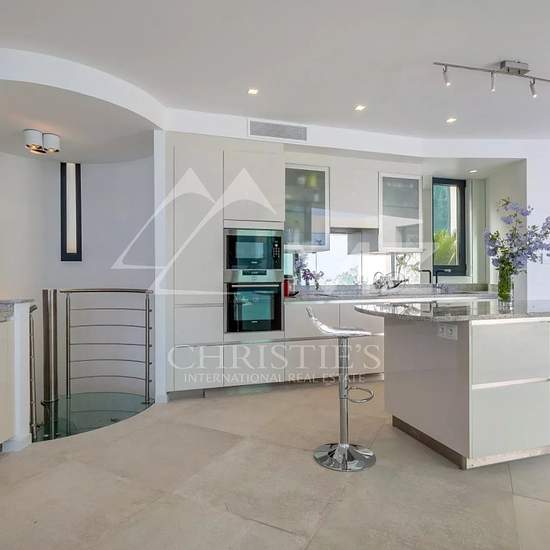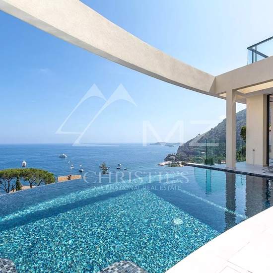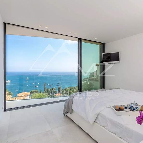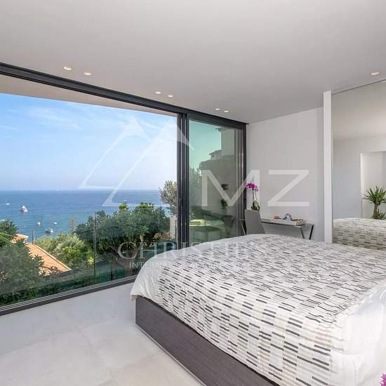 Villa contemporaine d'environ 365 m2 offrant un panorama exceptionnelle sur la mer. La propriété bénéficie de prestations de première qualité. Au niveau jardin, elle se compose d'une grande réception, salle à manger avec cuisine américaine ouvrant sur terrasse et espace de vie autour de la piscine, et d'une chambre avec salle douche en-suite. En rez-de-chaussée : 4 chambres chaqune avec vue mer et sa salles de bains/douche en-suite, coin bar, buanderie et réserve. Toit terrasse et 4 parkings. A 10 minutes à pieds de la mer. N'hésitez pas à n...