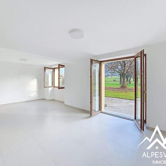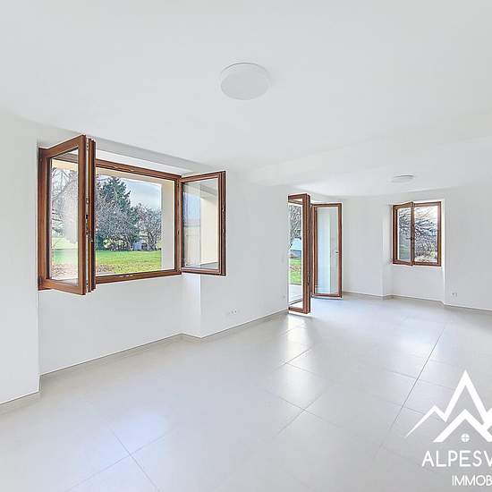 À LOUER – MAISON INDIVIDUELLE 4 CHAMBRES À FESSY Découvrez cette charmante maison entièrement rénovée de 117,80 m² (146 m² au sol), située dans la commune de Fessy. Vous profiterez également d’un magnifique jardin de 600 m² offrant une belle vue sur les montagnes. La spacieuse pièce de vie de 38 m², baignée de lumière grâce à ses grandes ouvertures et sa double exposition, s’ouvre sur une belle terrasse. De plus, vous pourrez profiter d’une cuisine entièrement aménagée et équipée. La maison se compose également de 4 chambres et d’une mezzani...