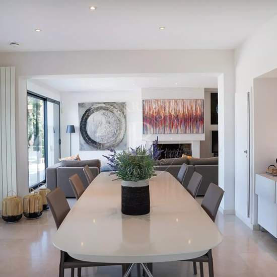 Cette villa de 250m² située sur les hauteurs de Gassin offre une vue panoramique sur le Golfe de Saint-Tropez. Entièrement rénovée avec des finitions de qualité, elle se compose d'un salon spacieux ainsi que d'une cuisine équipée ouverte sur la salle à manger, le tout bénéficiant d'une vue imprenable sur la mer. La villa compte quatre chambres avec salle de bain attenantes. L'extérieur de la villa offre un cadre paisible, avec une vaste piscine miroir offrant une vue panoramique à 180 degrés sur la mer, ainsi que deux grands salons spacieux....