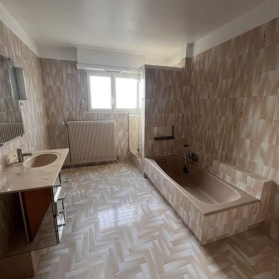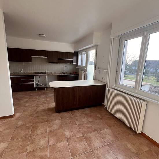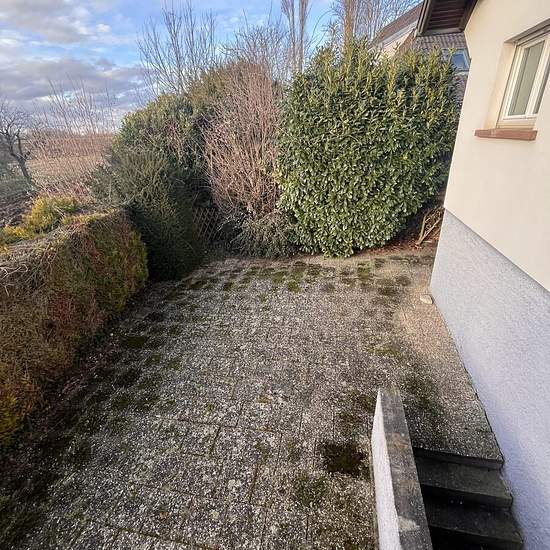 GRIESHEIM SUR SOUFFEL - PLACE DU MARECHAL JUIN Nous vous proposons à la location dans un quartier calme et résidentiel agréable maison de 170 m2 avec jardin La maison se compose de la façon suivante, une grande entrée, une cuisine semi-équipée, avec accès terrasse, un salon-séjour avec accès terrasse, une chambre, une salle de bain avec baignoire et douche, un wc séparé, à l'étage 4 chambres, une salle de bain avec wc Une cave, une buanderie et un garage double complètent ce bien Chauffage individuel au gaz Contact Sandrine PFISTER 15