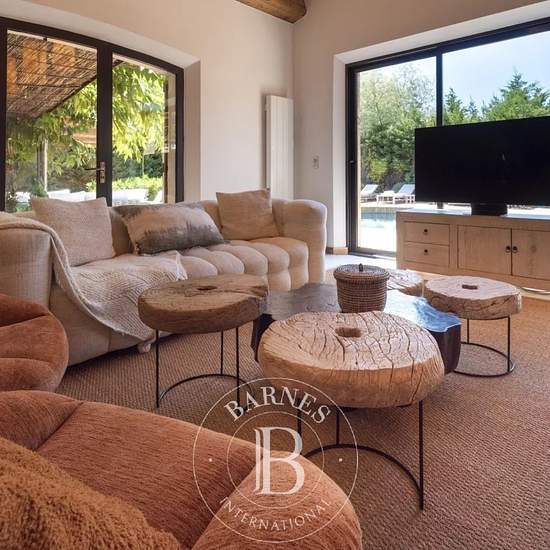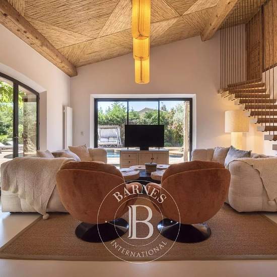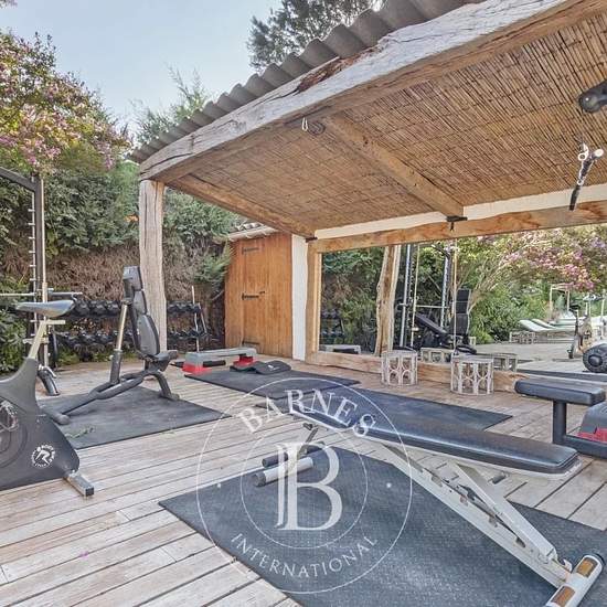 * Villa Cicadis * Située dans un environnement calme et sécurisé, cette villa intime est dissimulée dans les collines boisées du Massif des Maures, à seulement 600 m de la plage, idéale pour les familles. Cette propriété entièrement clôturée et sécurisée de 250 m² offre de nombreux espaces de vie conviviaux ainsi que cinq chambres avec salles de bain privatives. En extérieur, un jardin joliment arboré, une grande et agréable terrasse ombragée, un espace fitness ainsi qu'une piscine viennent parfaire le tout. Equipements : pétanque, salle de ...