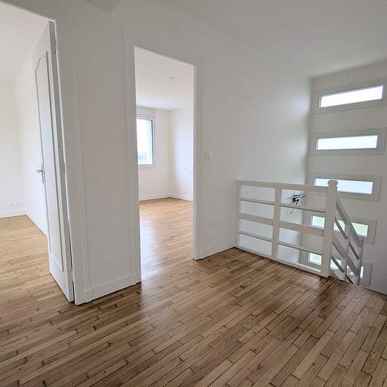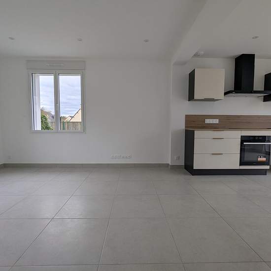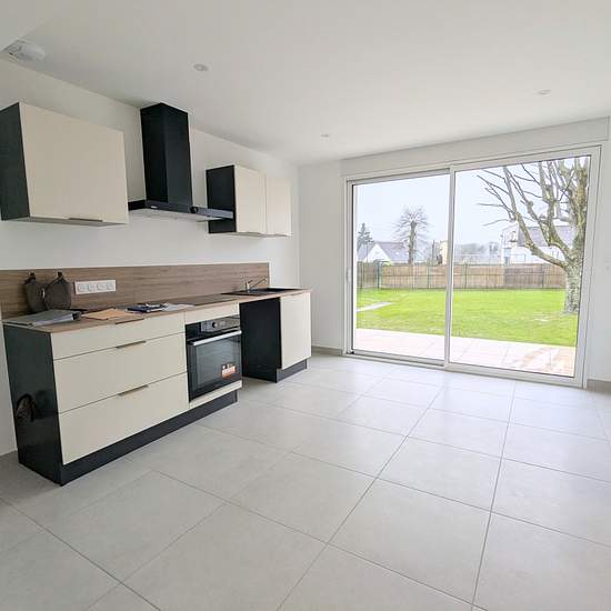 A LOUER à GUER, dans un environnement calme, découvrez cette maison d'habitation entièrement rénovée. Elle se compose, au rez-de-chaussée, d'une entrée avec placard, d'une cuisine aménagée et équipée ouverte sur un salon-séjour lumineux, d'une chambre avec salle d'eau privative, d'un WC ainsi que d'une buanderie. À l'étage, un dégagement dessert quatre chambres, dont deux avec placards, une salle de bains et un WC. En dépendance, un abri de jardin. Le tout sur un terrain d'environ 976 m2. Etat des lieux offert. Disponible immédiatement. Mont...