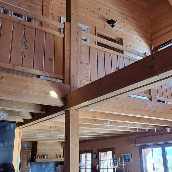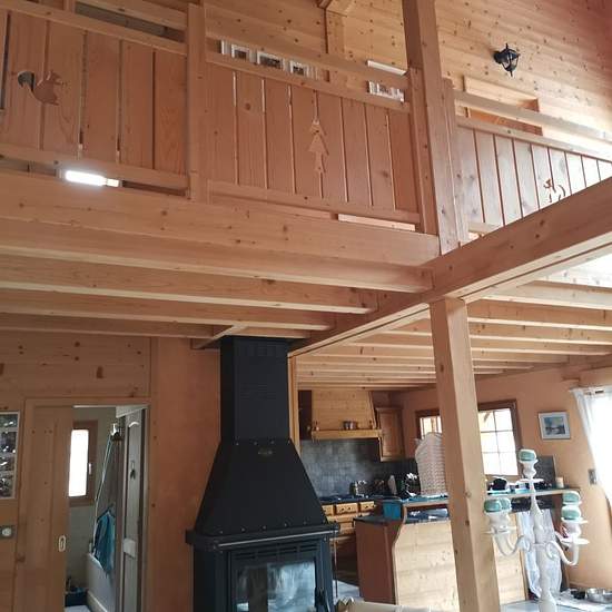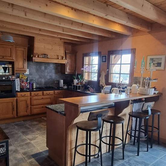 Chalet individuel de 140 m² avec 8 couchages, situé sur les hauteurs du village de Jougne dans la station de Métabief, à 5 minutes de la frontière suisse, à proximité des pistes de randonnée, VTT, ski nordique et du domaine skiable de Métabief versant Piquemiette. Secteur résidentiel et calme avec vue sur l'Aiguillon et le Suchet. Le chalet comprend au sous-sol une entrée, une buanderie, un garage. Accès premier étage par un esclaier. Grand salon cathédrale avec mezzanine coin salon avec cheminée à bois foyer fermé, cuisine ouverte entièreme...