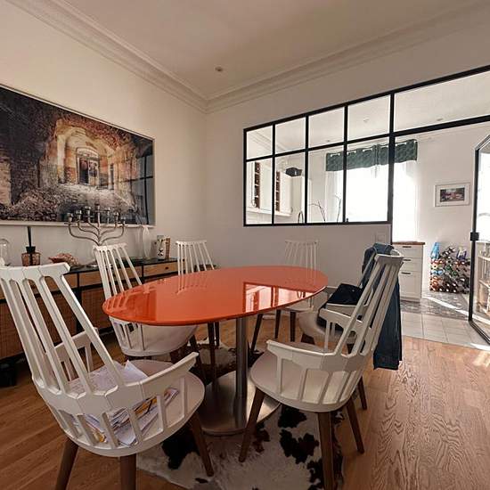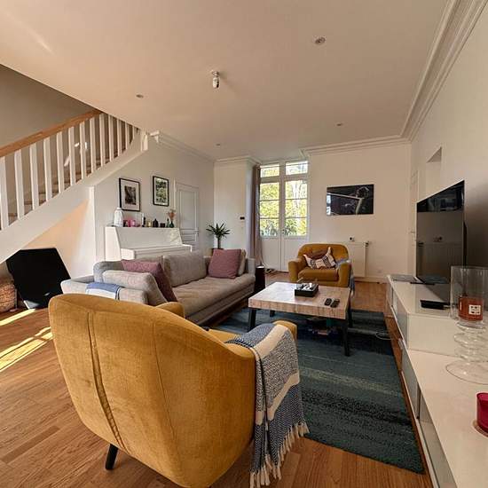Dans un manoir entièrement réhabilité en 2024 devisé en 3 logements indépendants. Bien rare sur le marché locatif, prestations de qualité dans un havre de paix, calme et verdoyant. Aux portes des transports et des commerces du bourg de la chapelle sur erdre. Le tram train à moins de 2km accessible en 5min à vélo. À 260 mètres de la maison le bus 86 et 96. Maison type 6 de 153 m² (au sol) comprenant, salon, sas avec lave mains, wc indépendant, salle à manger, cuisine aménagée et équipée (plaques hotte four, lave vaisselle, réfrigérateur congé...