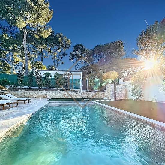 Découvrez cette magnifique villa entièrement rénovée en 2025, offrant des prestations haut de gamme et située dans un quartier résidentiel prisé, à seulement 10 minutes du centre de Cannes. Idéalement positionnée, cette propriété est proche des accès routiers et des commerces, vous assurant un quotidien pratique et agréable. Avec une généreuse surface de 220 m² répartie sur deux niveaux, cette villa offre des espaces de vie lumineux et fonctionnels. Au rez-de-jardin, vous serez séduit par un salon spacieux et lumineux, une cuisine équipée ou...