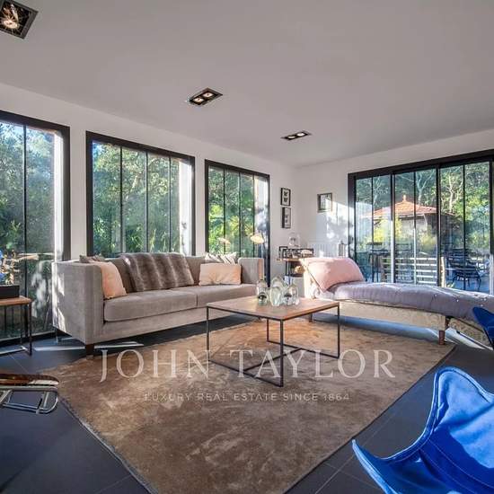 Explorez la Villa Belouca, un havre d'élégance tropicale niché au cœur d'une végétation luxuriante, entre dunes boisées et eaux paisibles du bassin d'Arcachon. Cette résidence mêle tradition et modernité pour capturer l'essence authentique de la Presqu'île, avec une ambiance décontractée et intemporelle accentuée par des jeux de lumière subtils. La maison principale, élégamment décorée, propose deux chambres avec salles d'eau privatives. Une suite supplémentaire avec accès indépendant ainsi qu'une annexe comprenant deux chambres et une salle...