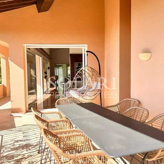 Location saisonnière : Dans un domaine sécurisé à Mandelieu-la-Napoule, à 5 minutes des commerces et de l'accès A8, à 10 minutes des plages et ports, et à 30 minutes de l'aéroport international de Nice, charmante villa avec piscine bénéficiant d'une vue panoramique sur la mer et l'Estérel. La villa pouvant accommoder jusqu'à 8 personnes se compose comme suit : En RDC une entrée desservant le grand séjour avec TV, la cuisine équipée attenante ainsi que 2 espaces salles à manger intérieur, le tout ouvrant sur une terrasse avec tables et chaise...