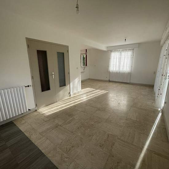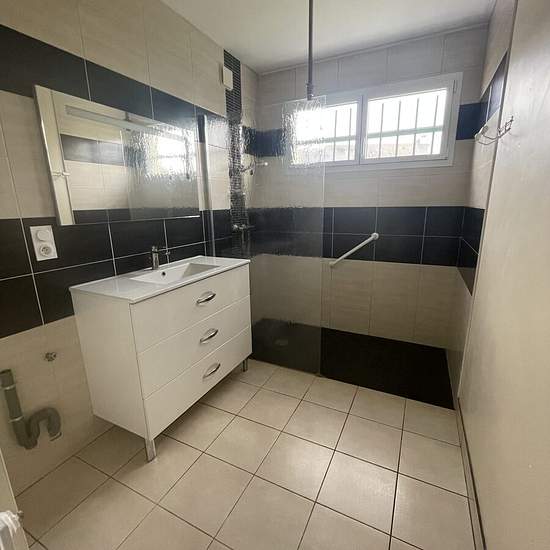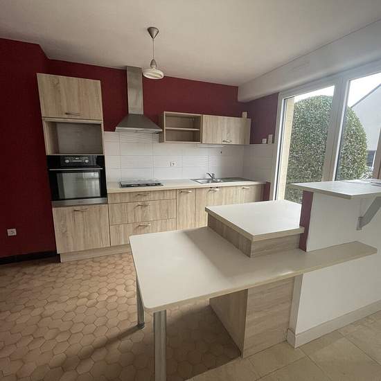 MONTAUBAN DE BRETAGNE - Centre Une maison de type 6 d'environ 117m² comprenant : Au rez-de-chaussée : Une entrée avec placard, salon/séjour/cuisine aménagée et équipée (four + hotte + feux-gaz), 2 chambres dont une avec placard, une salle d'eau et un wc; A l'étage : Dégagement avec placard, 2 chambres dont un avec placard et une avec accès grenier, une salle d'eau et un wc. Au sous-sol : un garage et une cave. Le tout sur un terrain de 839 m². La maison est chauffée au fioul. Libre à partir du 18 Mars Honoraires de 687 € TTC à la charge du l...